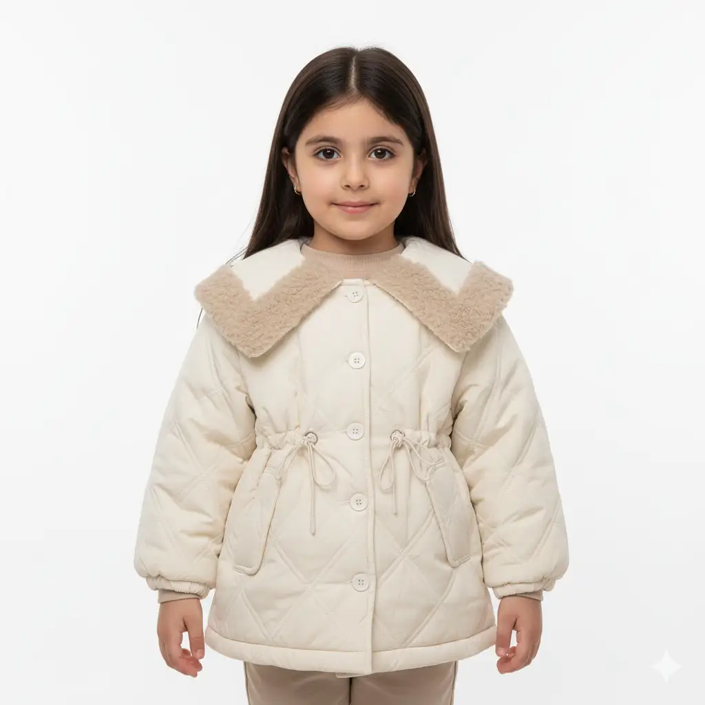 کاپشن بلند یقه خز دخترانه سفید وارداتی