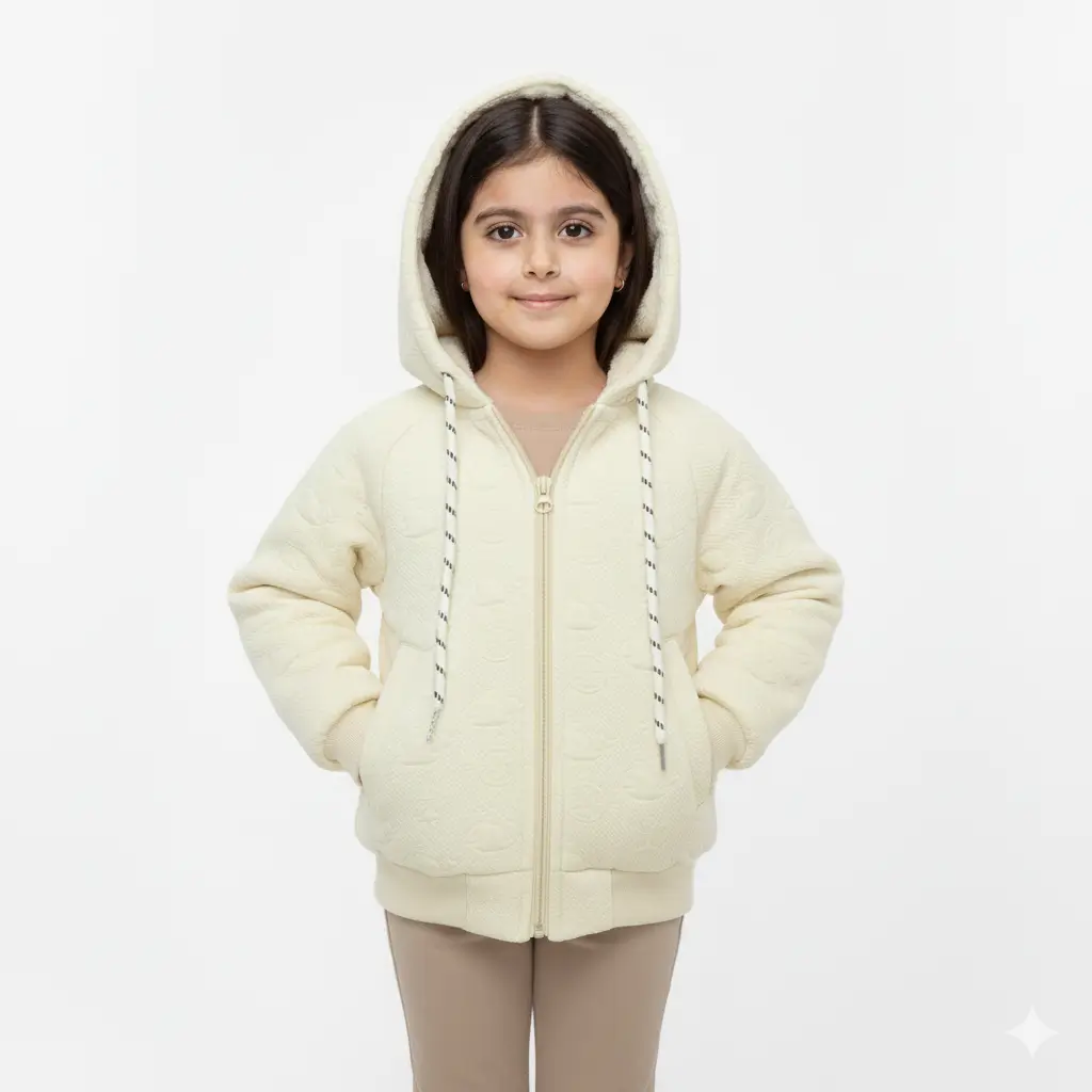 سویشرت کلاه دار داخل پشمی سفید دخترانه