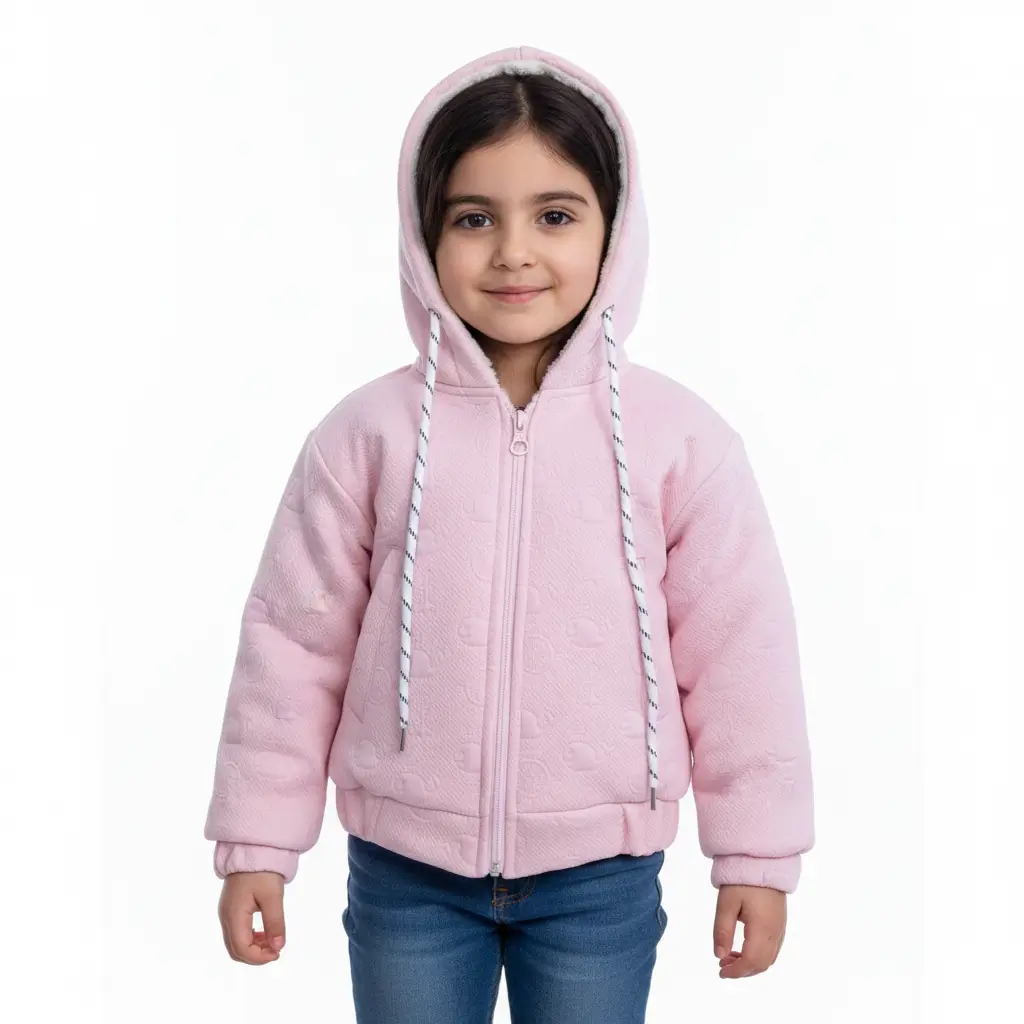 سویشرت کلاه دار داخل پشمی صورتی دخترانه